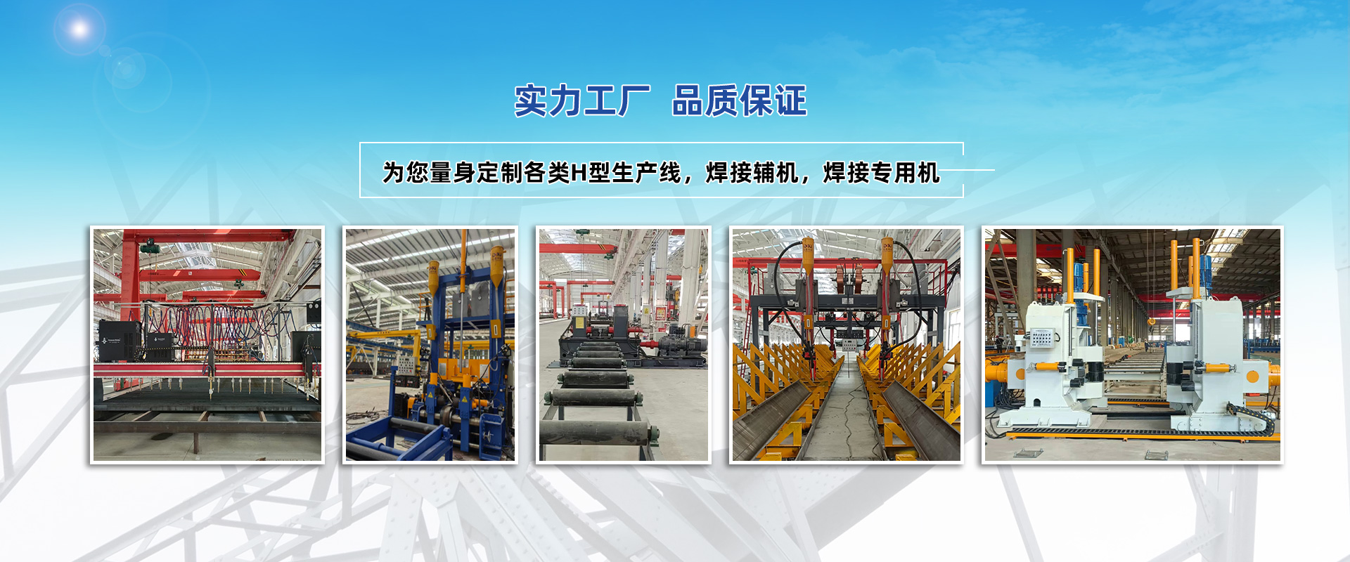 集研发、制造、组装、销售H型钢设备的科技型企业。研制开发的焊接系列产品H型生产线,焊接辅机,焊接专用机,数控设备,抛丸清理设备等。